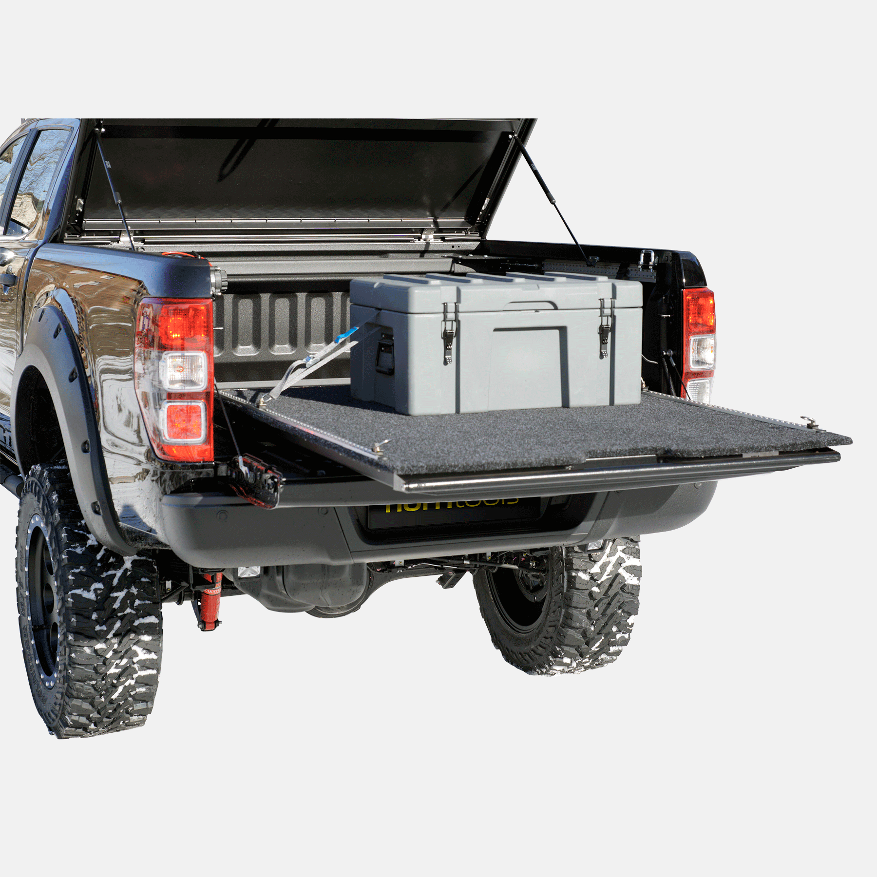 Bei unserem horntools Schwerlastauszug VIATOR steht die Funktionalität im Vordergrund. Mit der ausziehbaren Ladefläche hast du die Möglichkeit, deinen PickUp professionell zu beladen und die Ladung sicher zu transportieren. Der Auszug verfügt über abnehmbare Seitenwände, ebenfalls punktet er mit einem Sicherheitsgriff, der einhändig bedient werden kann.. Das Verschlusssystem mit 3 Einrastpositionen gewährleistet ein sicheres be- und entladen. Airlineschienen mit verstellbaren Fittings garantieren eine individuelle Sicherung. Geschützt wird deine Ladung mit dem im Lieferumfang enthaltenen robusten Teppich auf der Ladefläche. Im ausgezogenen Zustand kann der Schwerlastauszug 450 kg aufnehmen.. Der Schwerlastauszug ist passend für folgende Fahrzeugmodelle:. Fiat Fullback. Ford Ranger. Mitsubishi L200. Isuzu Dmax. Nissan Navara. Renault Alaskan. Toyota Hilux. VW Amarok (bis BJ. 2019). Besonderheiten:. Der Auszug verfügt über eine Doppel-Federung und drei Einrastepositionen, sowie robuste Träger mit Querstreben, die für eine optimale Stabilität sorgen.. Des Weiteren dient der Teppich als Schutz der Ladung und die Seitenwände sind abnehmbar. Im Lieferumfang sind auch 4 verstellbare Fittings für eine individuelle Sicherung der Ladung.. Technische Daten:. Eigengewicht: 65 kg. max. Nutzlast: 450 kg (Darf Ladekapazität des Grundfahrzeuges jedoch nicht überschreiten). Auszugslänge: 900 mm. Hinweis:. Der Auszug ist für den Volkswagen Amarok bis Bj. 2019 passend. Bei neueren Modellen sind Anpassung Arbeiten notwendig.. Bei Fahrzeugen mit einer Laderaumwanne muss die Laderaumwanne entfernt werden, um den Schwerlastauszug zu montieren.. Wir empfehlen, die Ladefläche vor der Montage zum Schutz mit Herculiner zu beschichten.. Stahlseilverlängerung:. Eine Stahlseilverlängerung der Heckklappe muss montiert werden, da im beladenen Zustand sonst der Auszug an die Heckklappe anstößt.. Lieferumfang:. Montagematerial. Robuster Teppich zum Schutz der Ladung. Abnehmbare Seitenwände