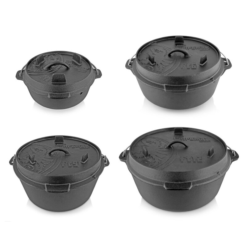 Durch die hervorragenden Eigenschaften des Gusseisens und die spezielle Oberflächenstruktur wird die Wärme effizient gespeichert und weitergeleitet. Die vorbehandelte Oberfläche (seasoned finish) macht ein erstmaliges Einbrennen unnötig und der robuste Feuertopf kann sofort verwendet werden. Im Freien wird er auf dem offenen Feuer oder mit Holzkohle verwendet. Der erhöhte Rand des Deckels ermöglicht es, Glut oder Holzkohle auch auf dem Feuertopf zu platzieren. So wird der Feuertopf von allen Seiten beheizt und eignet sich beispielsweise auch zum Brot backen.