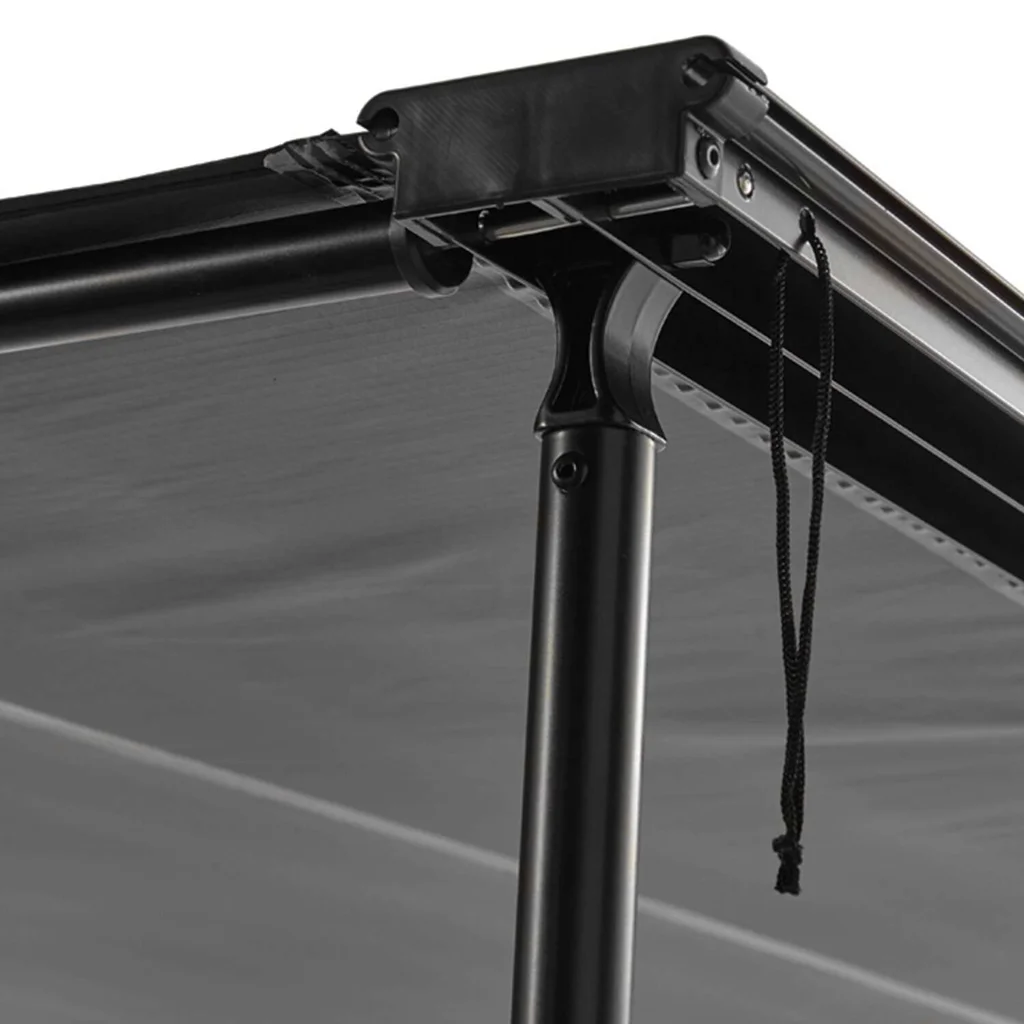 Die Markise wird über ein Schienensystem individuell an deinem Dachträger montiert. In der Höhe verstellbare Teleskopstangen bilden das stabile Gerüst deiner Markise. Super easy mit den Klettlaschen Stoff mit Stangen verbinden, schon steht dein Unterstand nach nur wenigen Handgriffen!