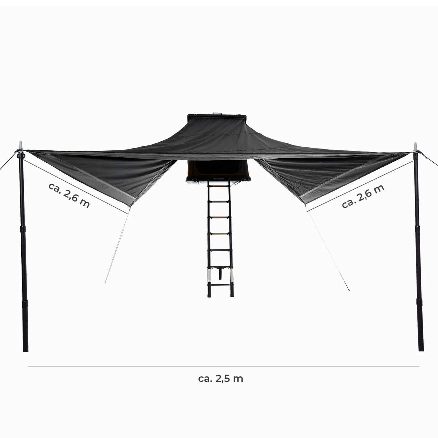 Das weitläufige Sonnensegel für das CUMARU LIGHT bietet dir Schutz vor Regen und Sonne und einen gemütlichen Ort vor deinem Fahrzeug.
